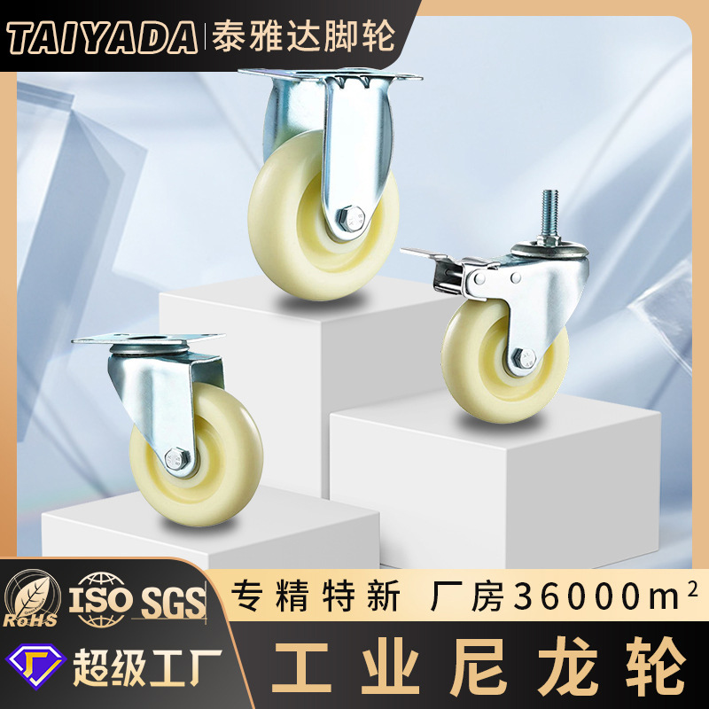 脚轮345寸白PP航空箱手推车万向刹车尼龙轮工业脚轮万向轮子