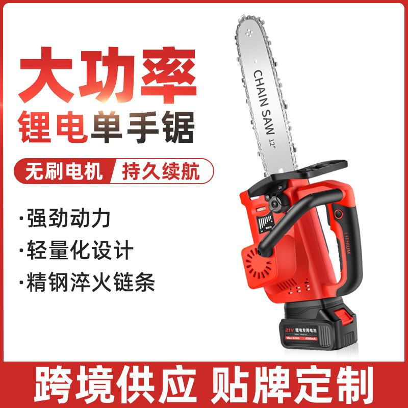 跨境专供无刷单手持据12寸电链锯锂电伐木锯家用电锯充电式锂木工