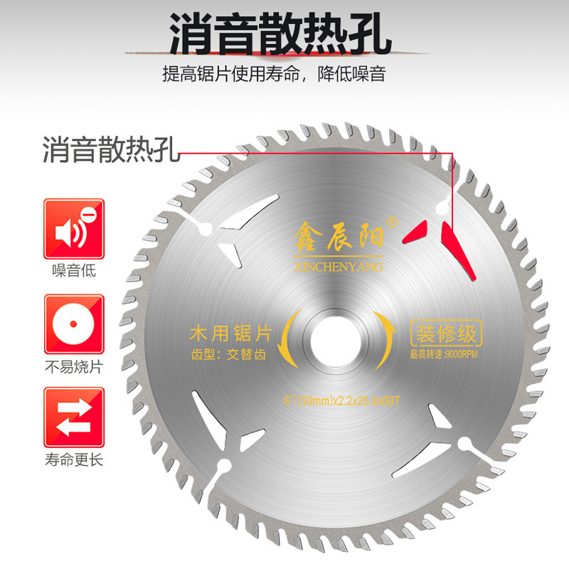 木工专用锯片 消音散热孔左右交替齿型