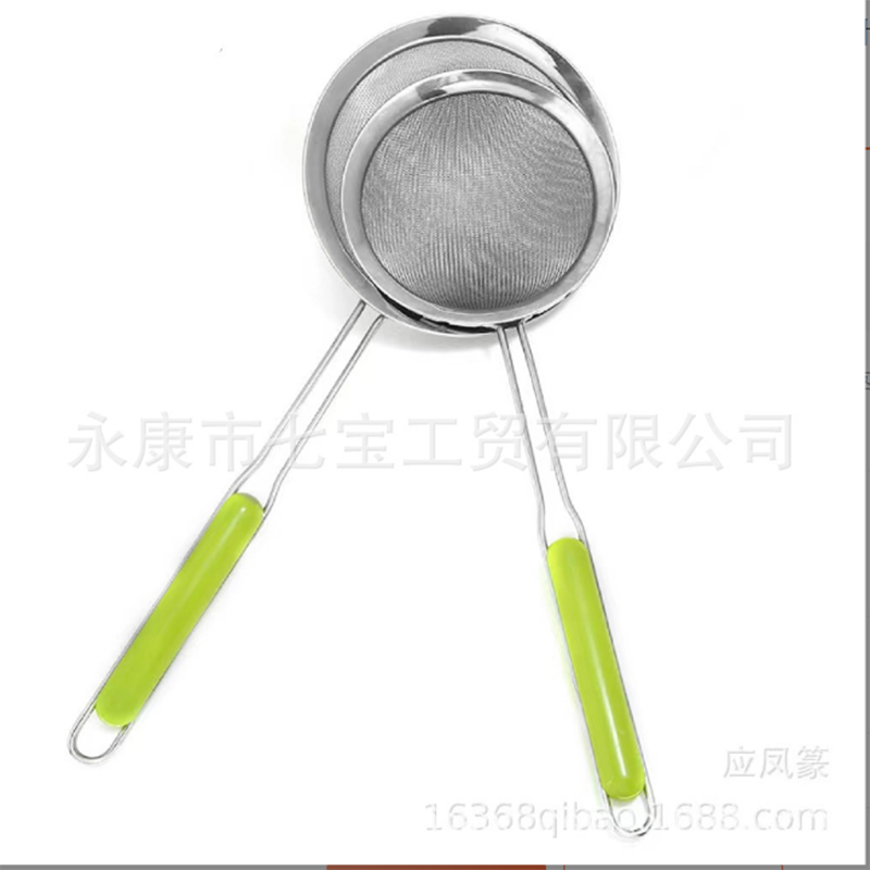 不锈钢加长绿柄斜纹油格超细豆浆机果汁过滤网筛家用泡沫捞勺漏勺