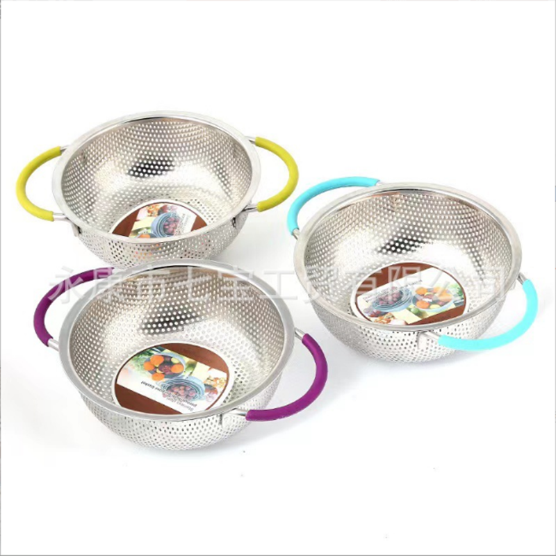 不锈钢彩边冲孔篮不锈钢米粉筛