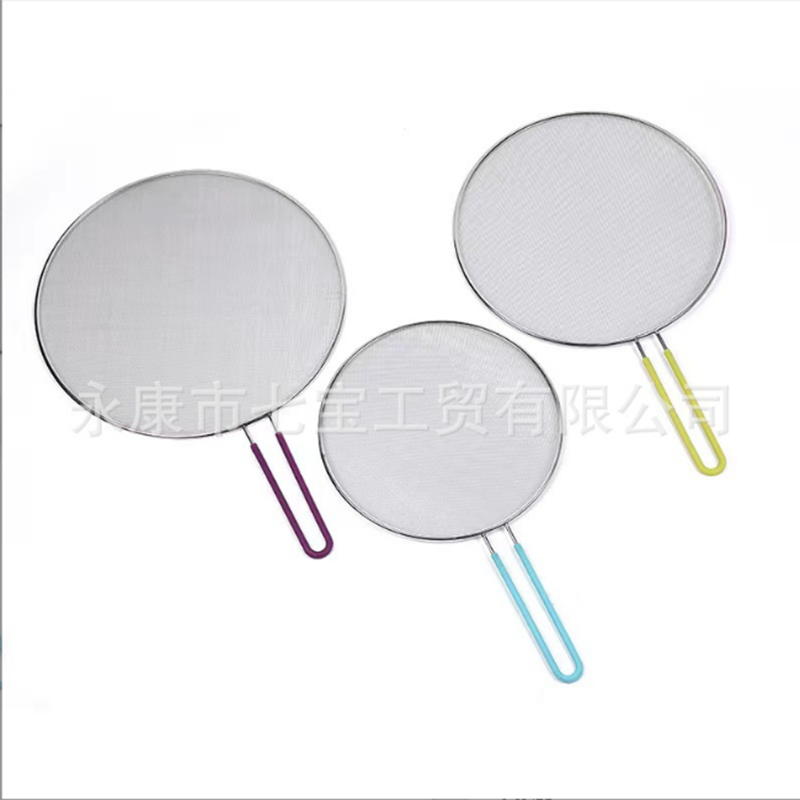 厨房家用硅胶带柄把手防油网圆形不锈钢防油溅网防油爆网油隔锅盖