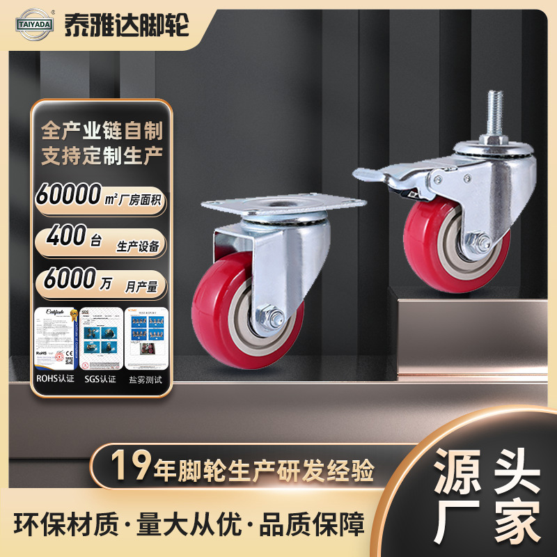 泰雅达工业静音万向轮脚轮轮子滑轮滚轮带刹车推车