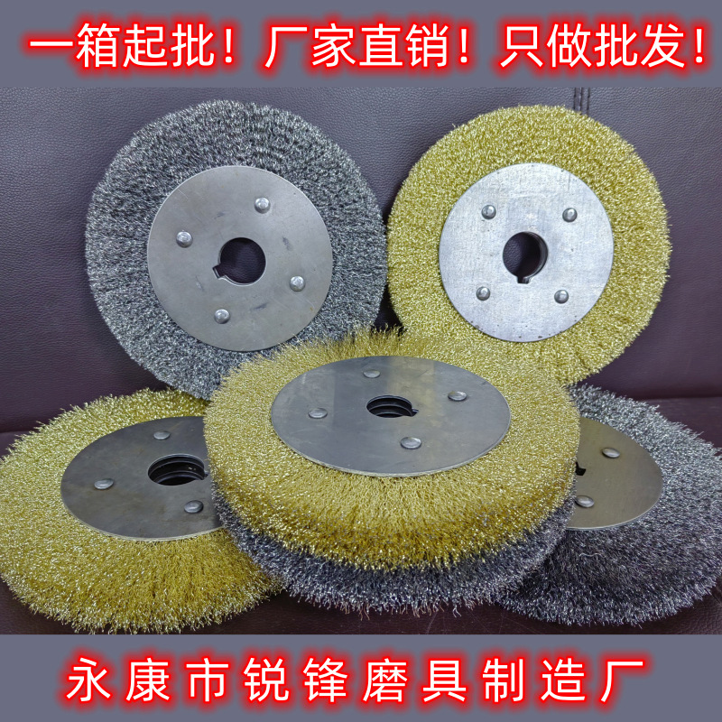 厂家直销200平型钢丝轮镀黄铜钢丝轮抛光打磨除锈机不锈钢丝批发