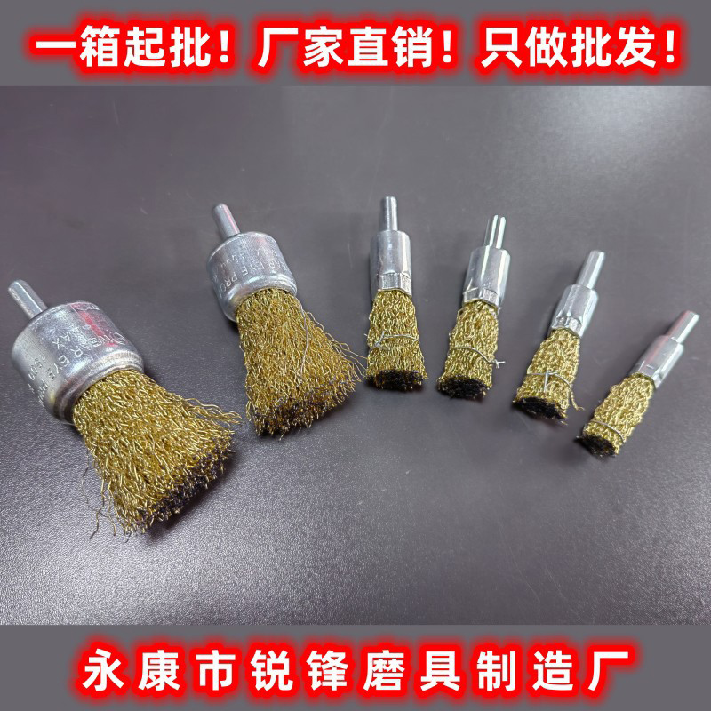 厂家直销钢丝笔型刷杆平轮碗刷带柄打磨头镀铜钢丝电磨配件笔型除